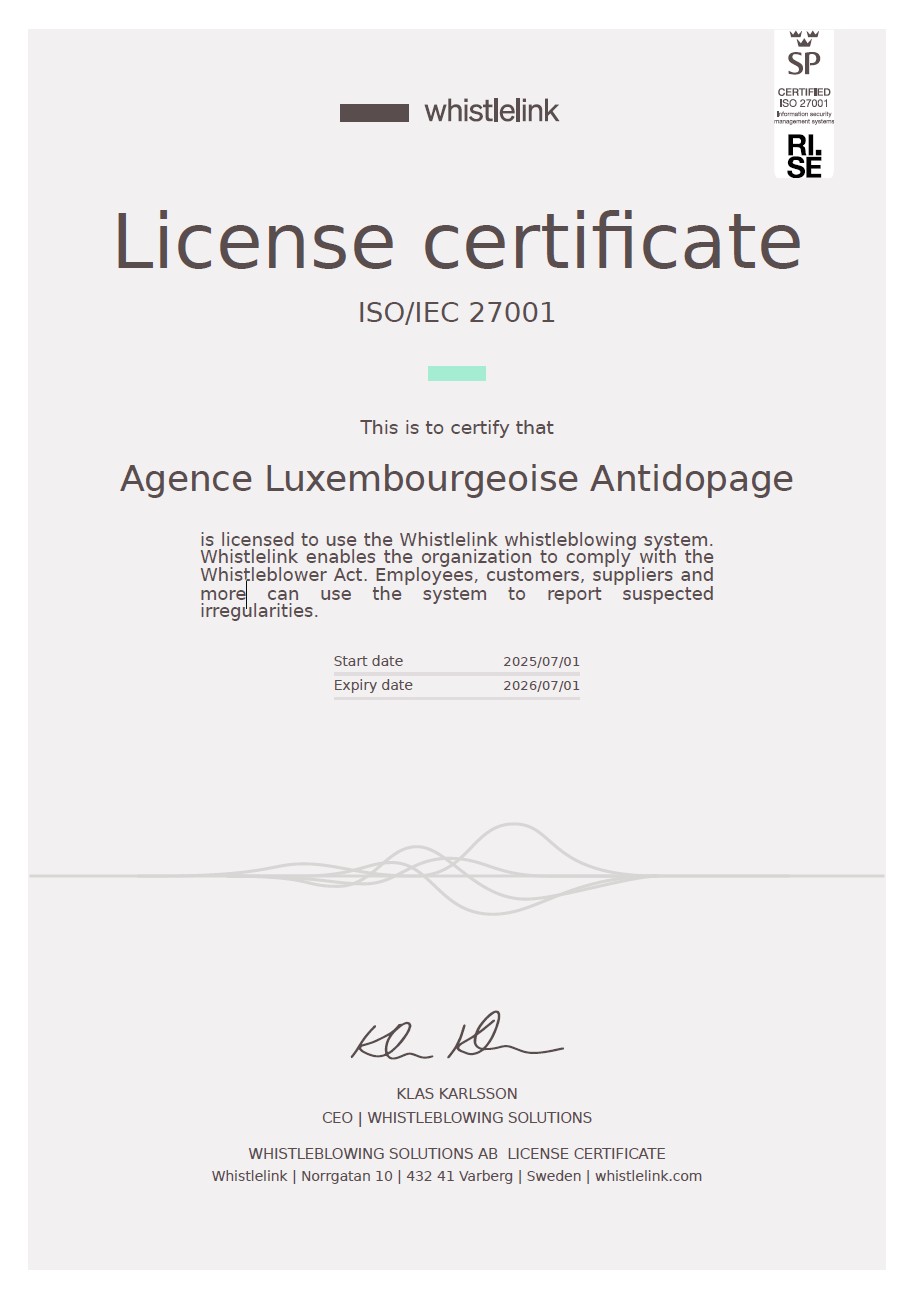L’Agence Luxembourgeoise Antidopage (ALAD) recrute un(e) Chargé d’éducation-prévention (h/f) et un(e) Responsable Antidopage (h/f)